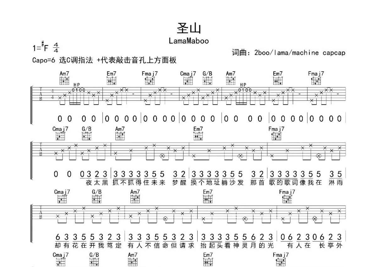 LamaMaboy《圣山》吉他谱 - C调弹唱六线谱