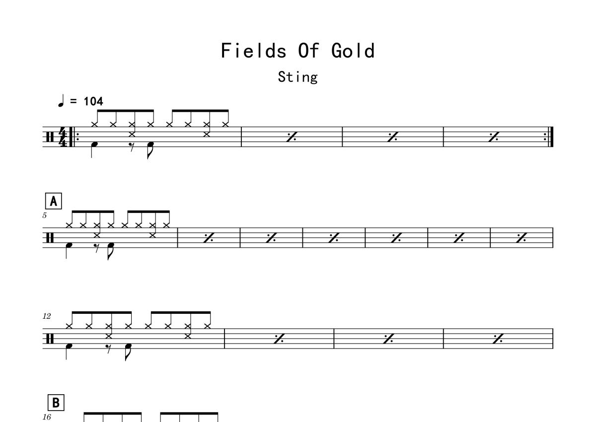 Sting《Fields_Of_Gold》鼓谱 - 架子鼓谱