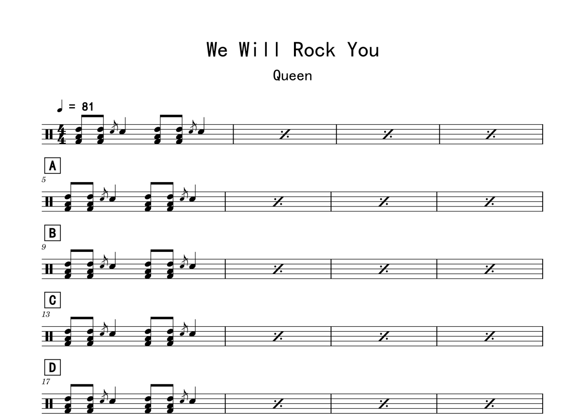 Queen《We_Will_Rock_You》鼓谱 - 架子鼓谱