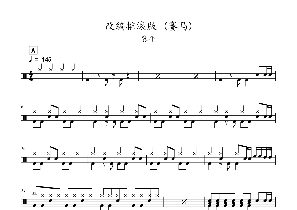 冀平《赛马》鼓谱 - 架子鼓谱 - 改编摇滚版