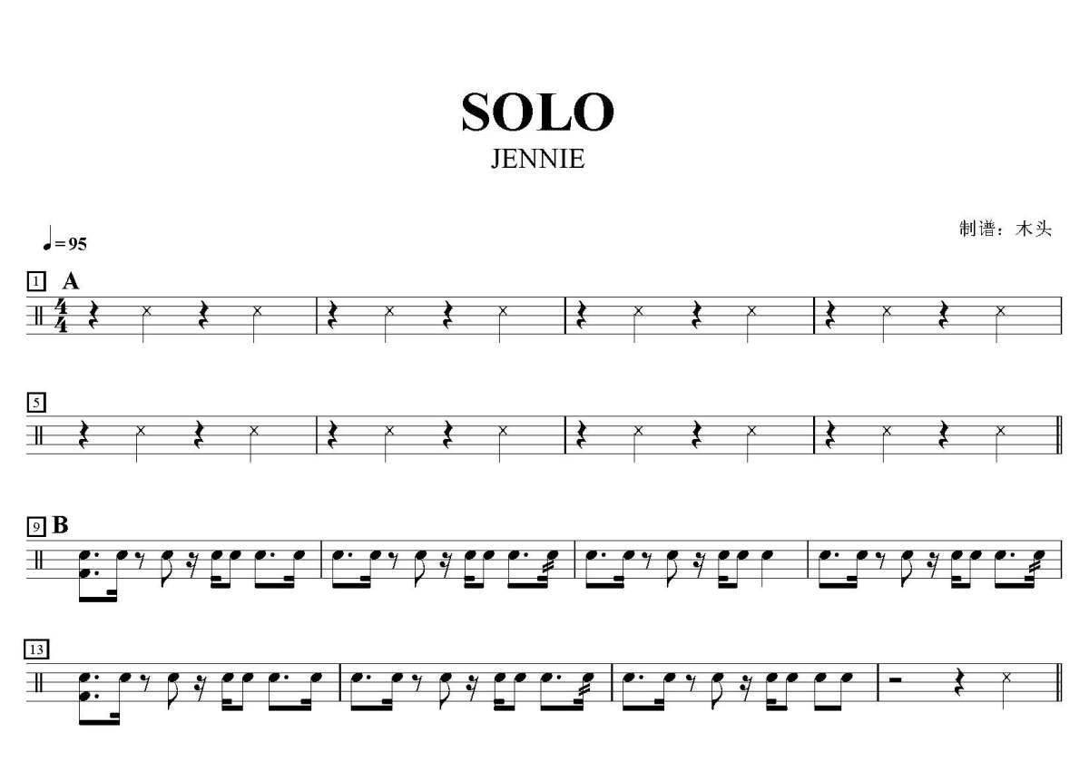 JENNIE《SOLO》鼓谱 - 架子鼓谱