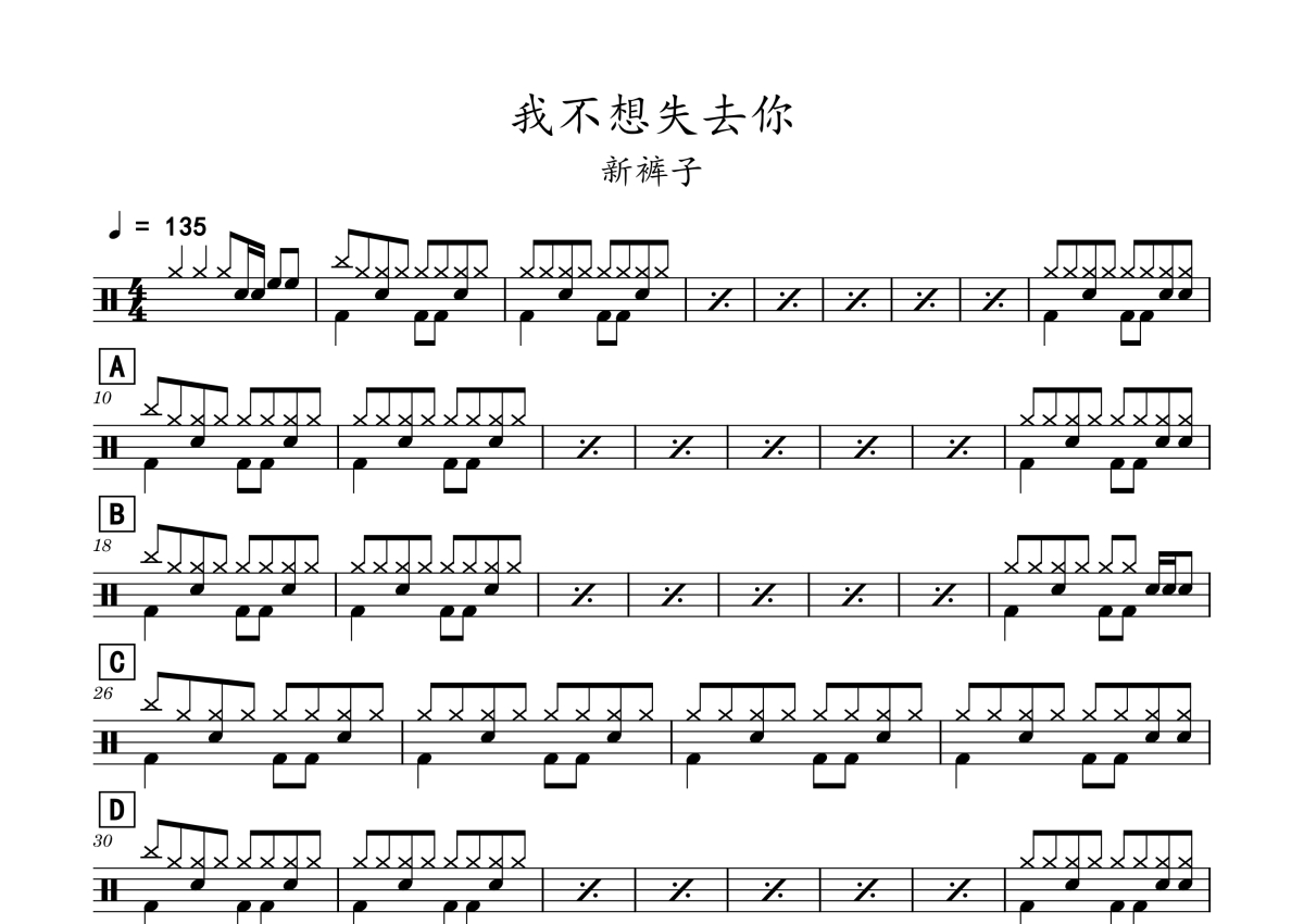 新裤子《我不想失去你》鼓谱 - 架子鼓谱