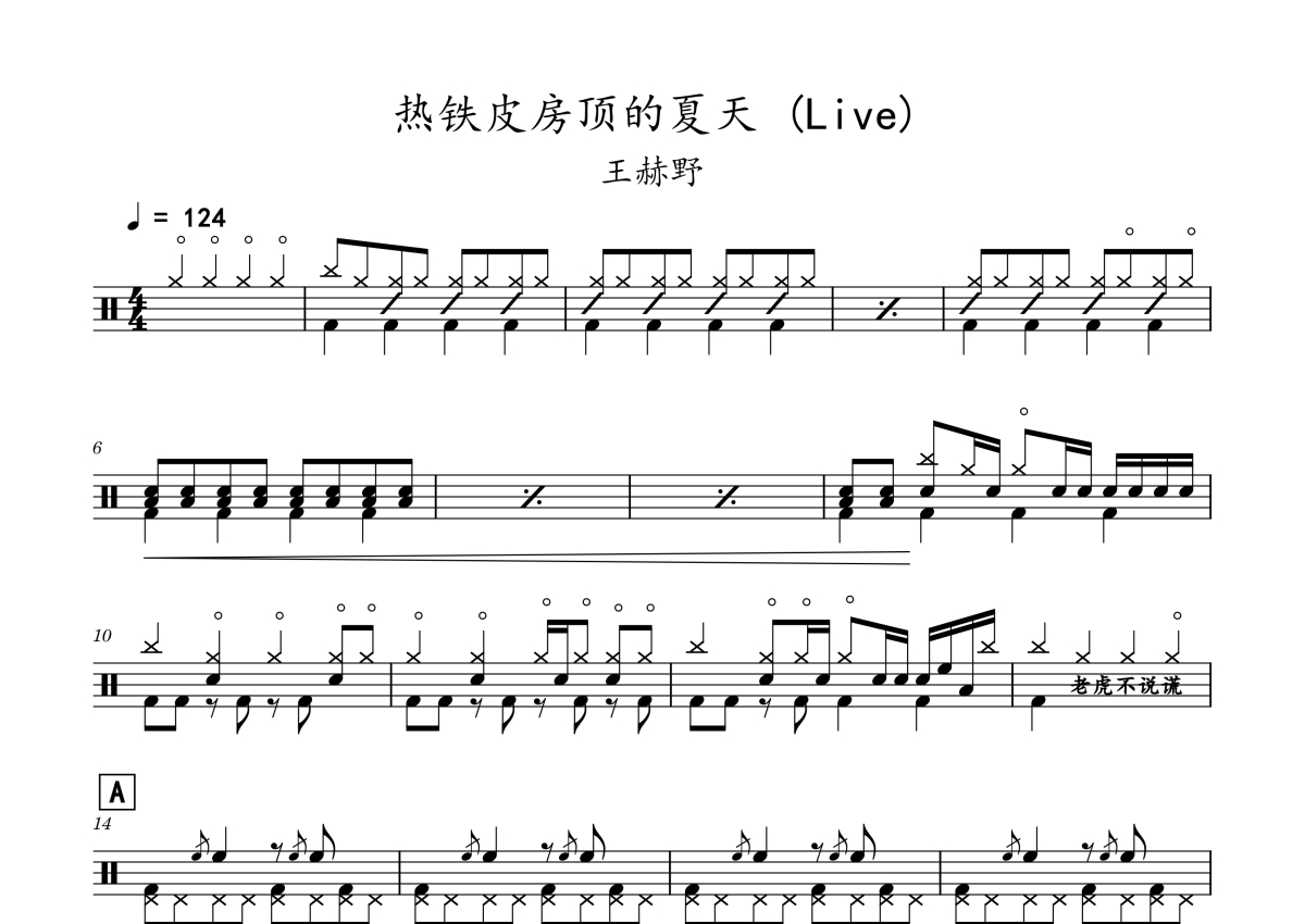王赫野《热铁皮房顶的夏天》鼓谱 - 架子鼓谱 - Live