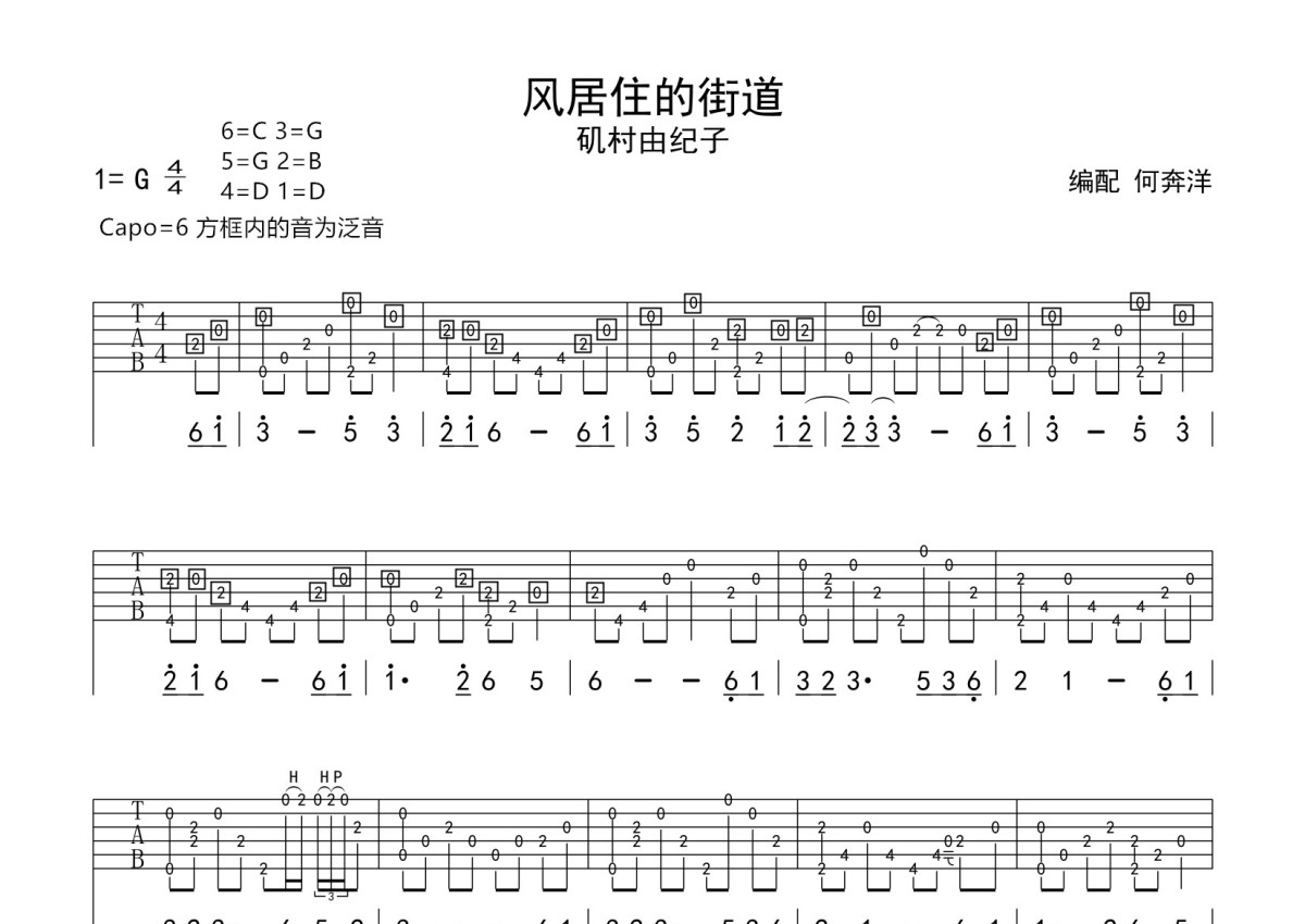 矶村由纪子《风居住的街道》吉他谱 - G调独奏六线谱