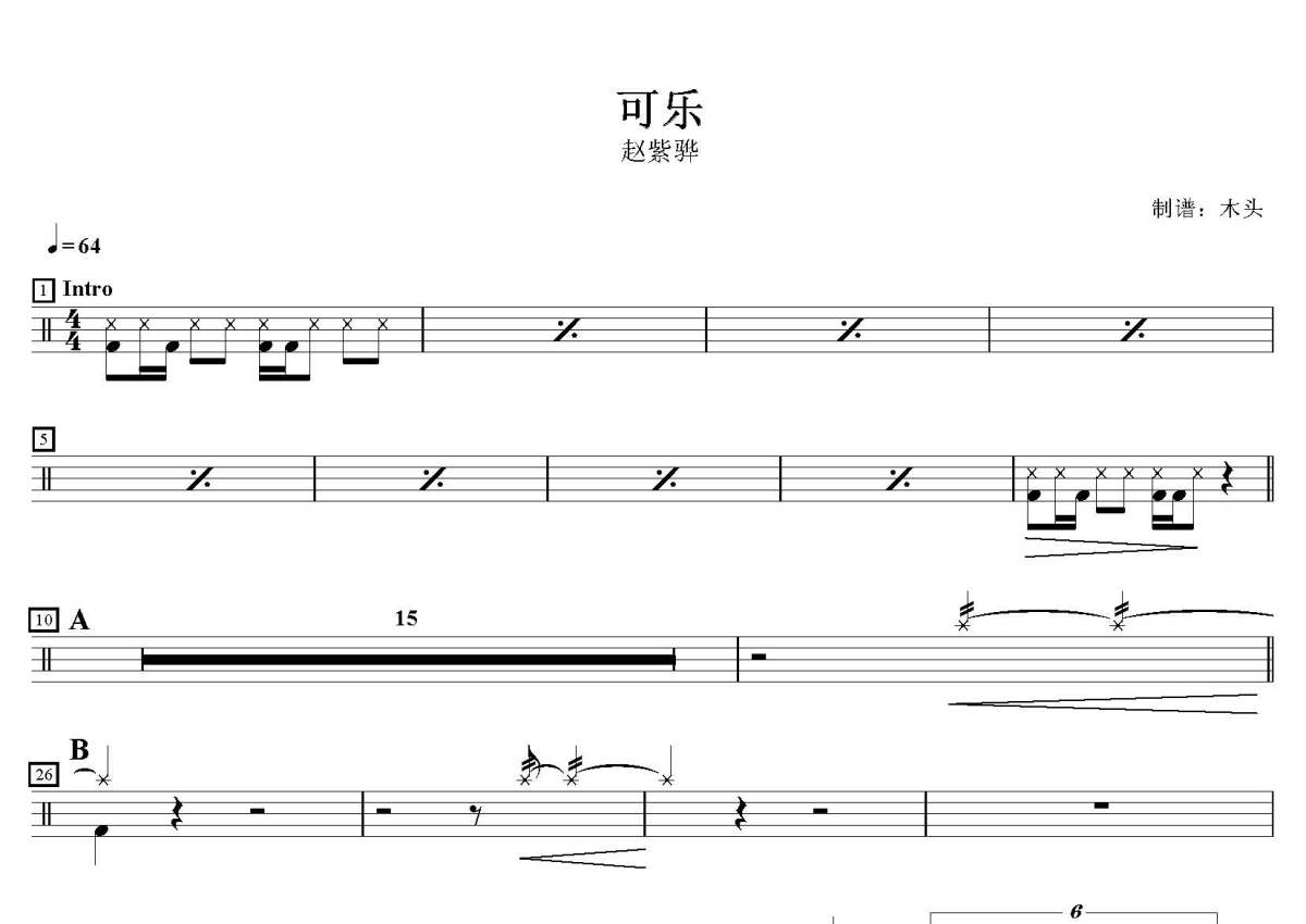 赵紫骅《可乐》鼓谱 - 架子鼓谱