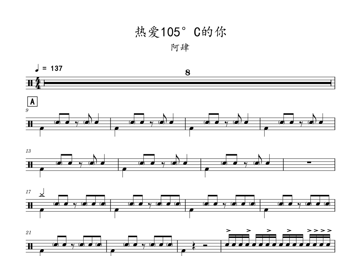 阿肆《热爱105°C的你》鼓谱 - 架子鼓谱