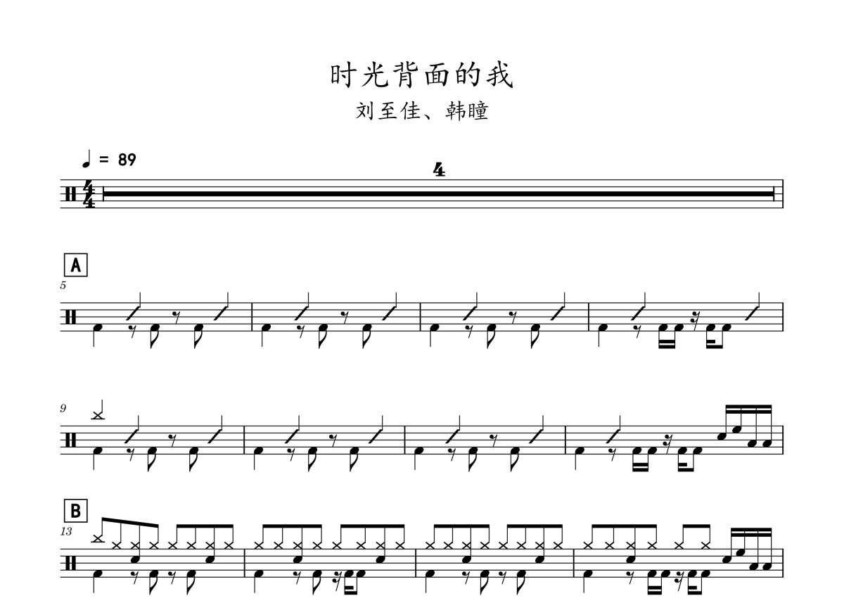 刘至佳/韩瞳《时光背面的我》鼓谱 - 架子鼓谱