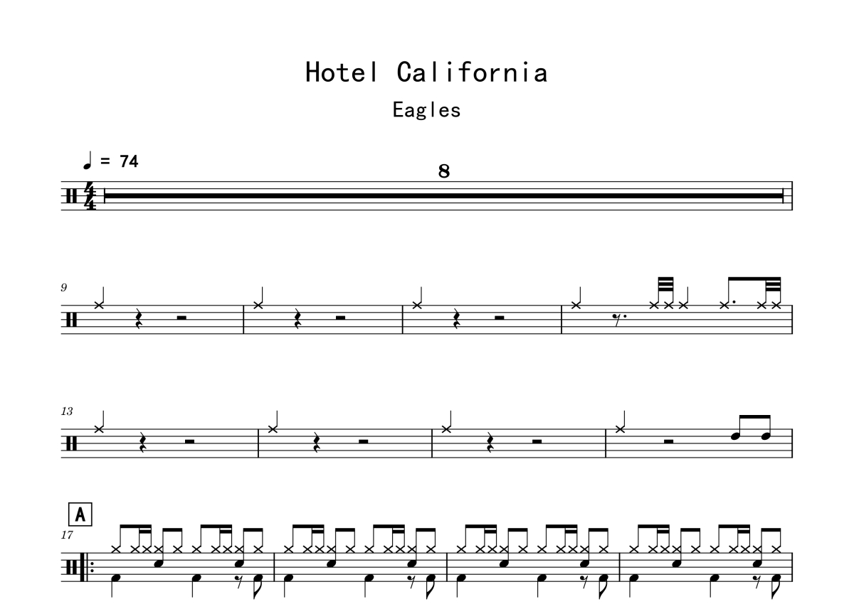 Eagles《Hotel California》鼓谱 - 架子鼓谱