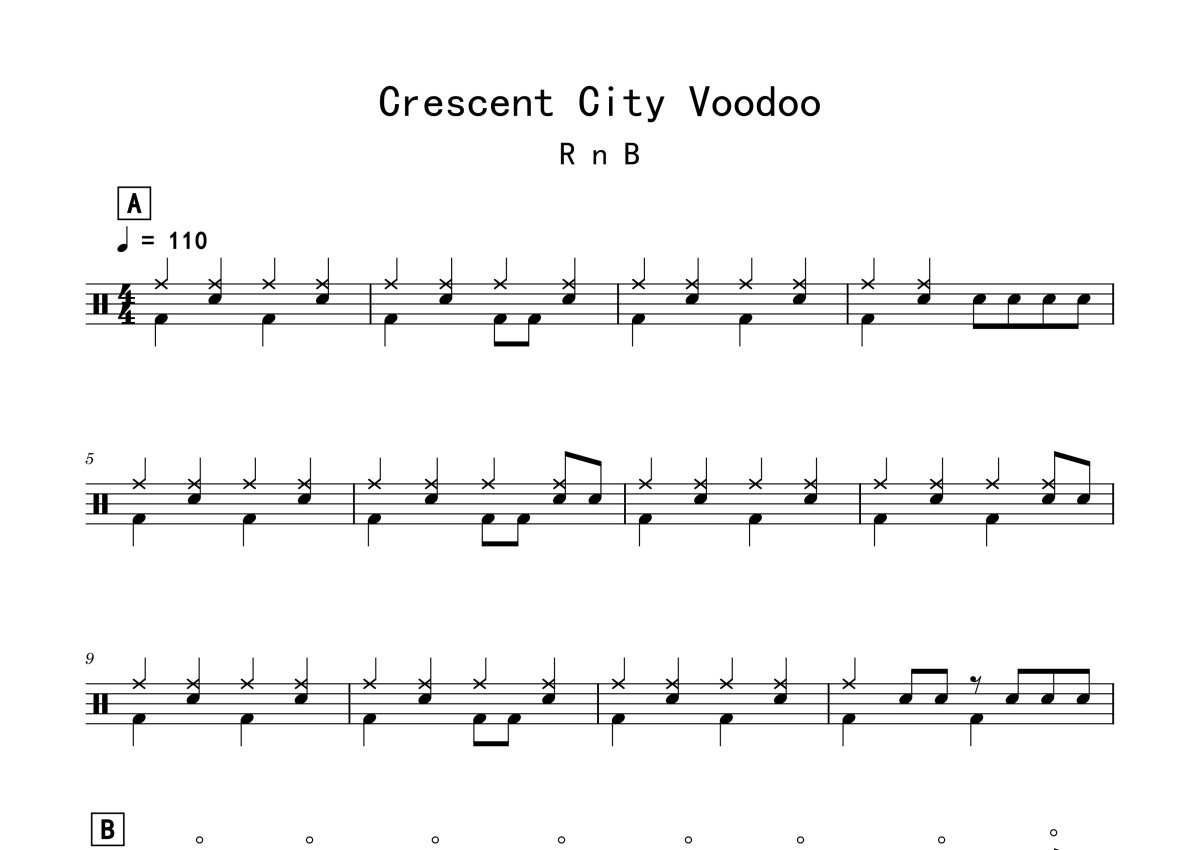 练习《Crescent_City_Voodoo》鼓谱 - 架子鼓谱