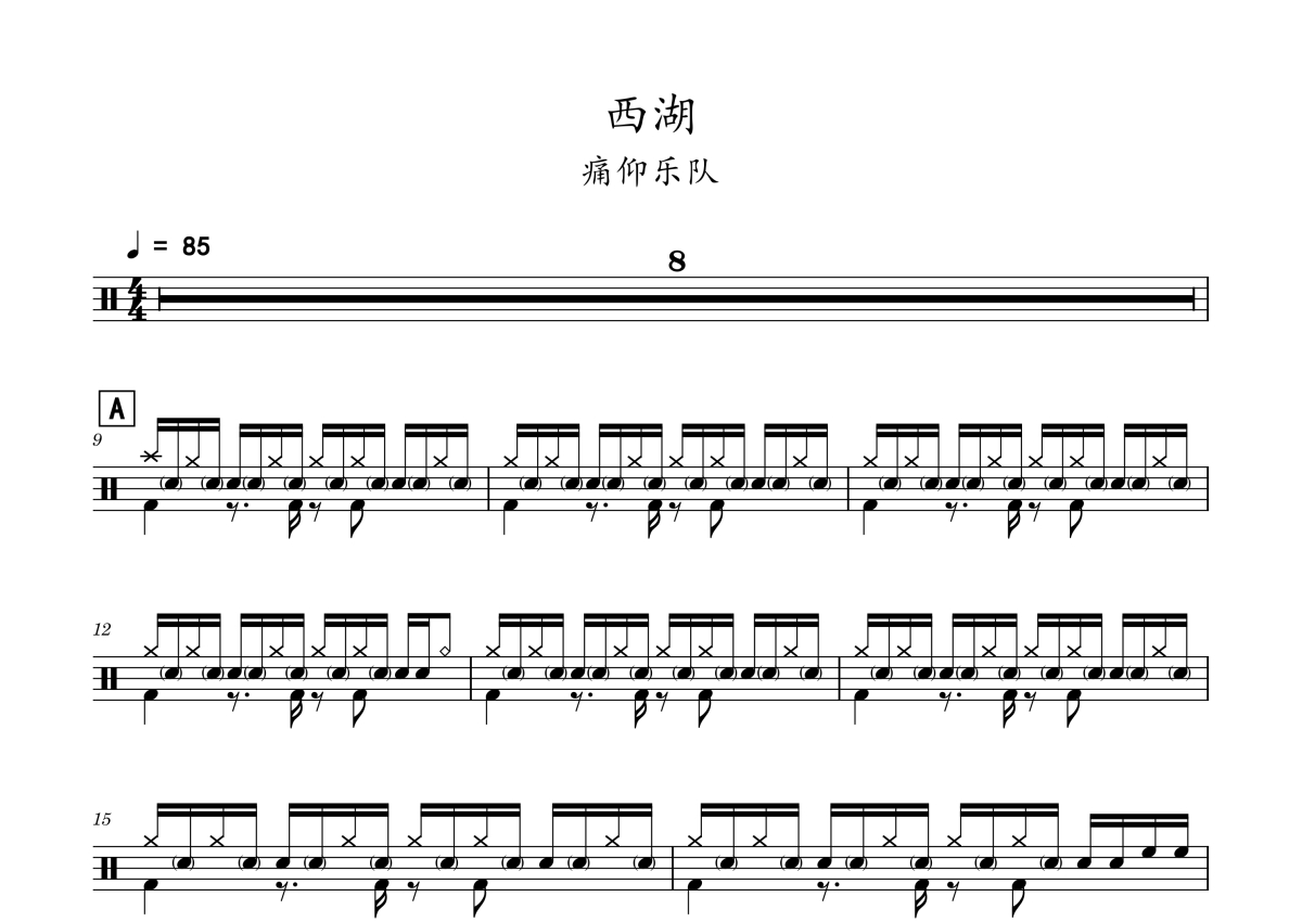 痛仰乐队《西湖》鼓谱 - 架子鼓谱