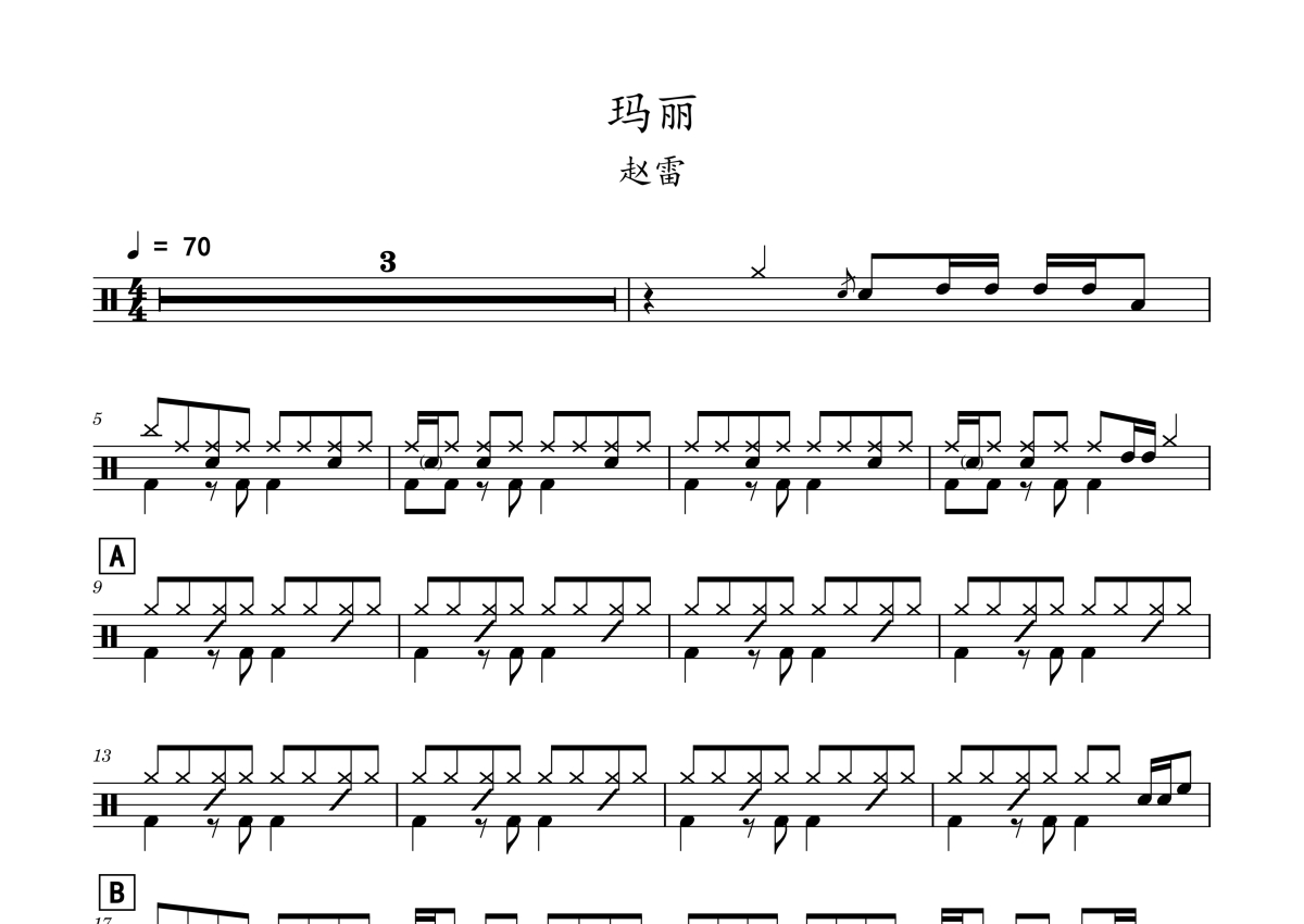 赵雷《玛丽》鼓谱 - 架子鼓谱