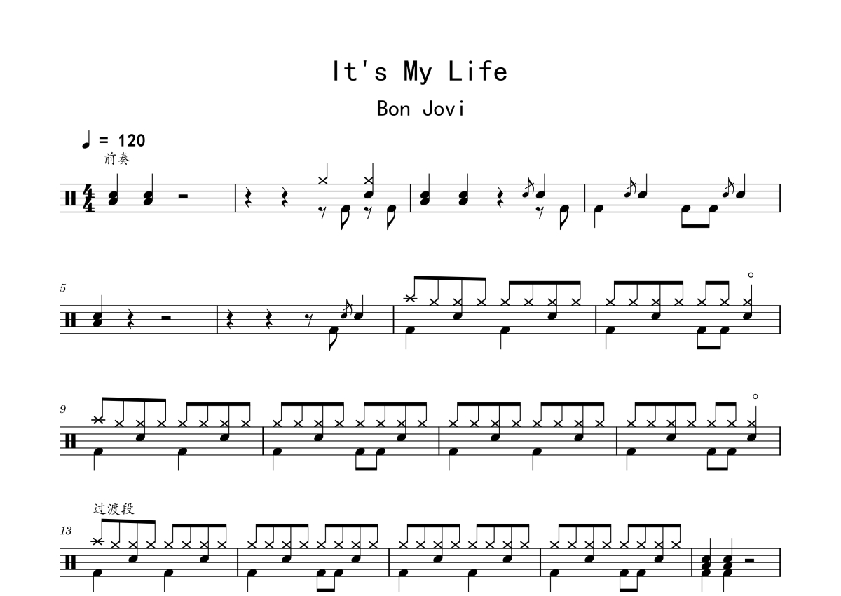 Bon Jovi《It`s my life》鼓谱 - 架子鼓谱