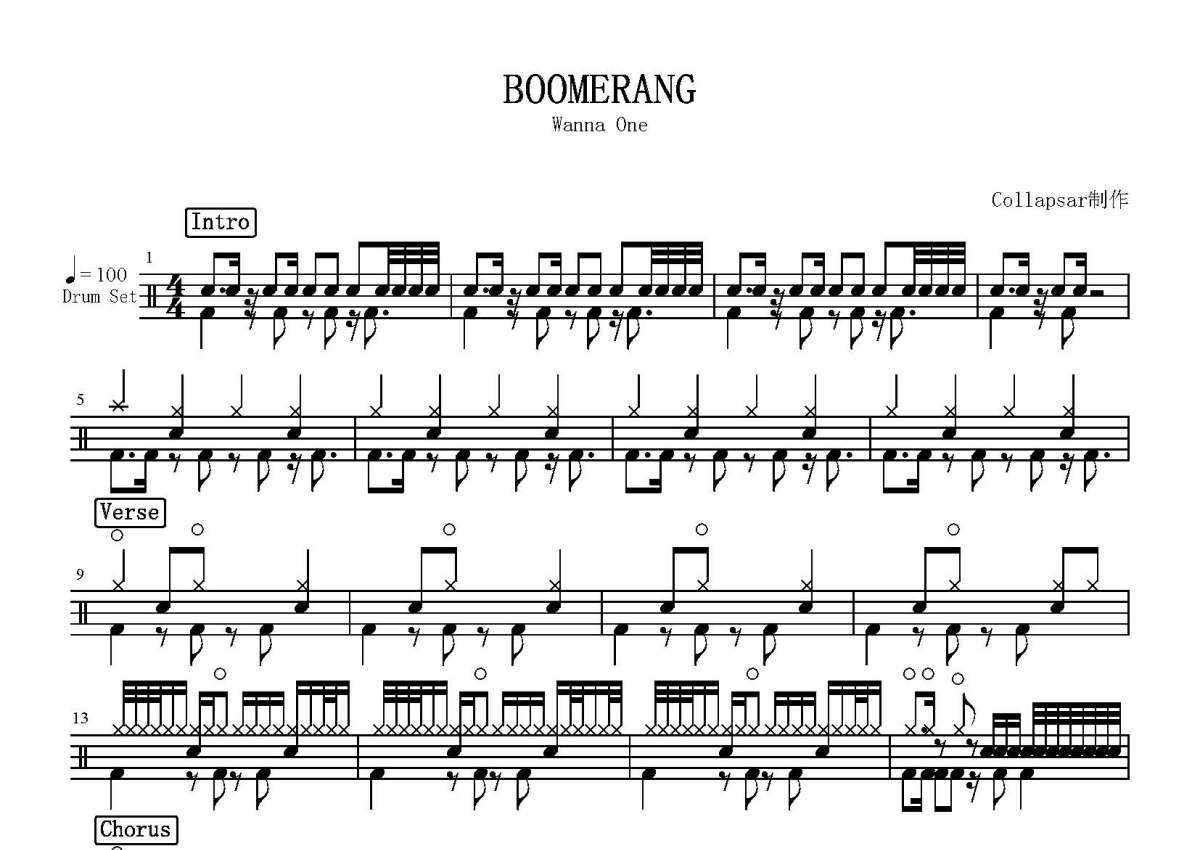 Wanna One《BOOMERANG》鼓谱 - 架子鼓谱