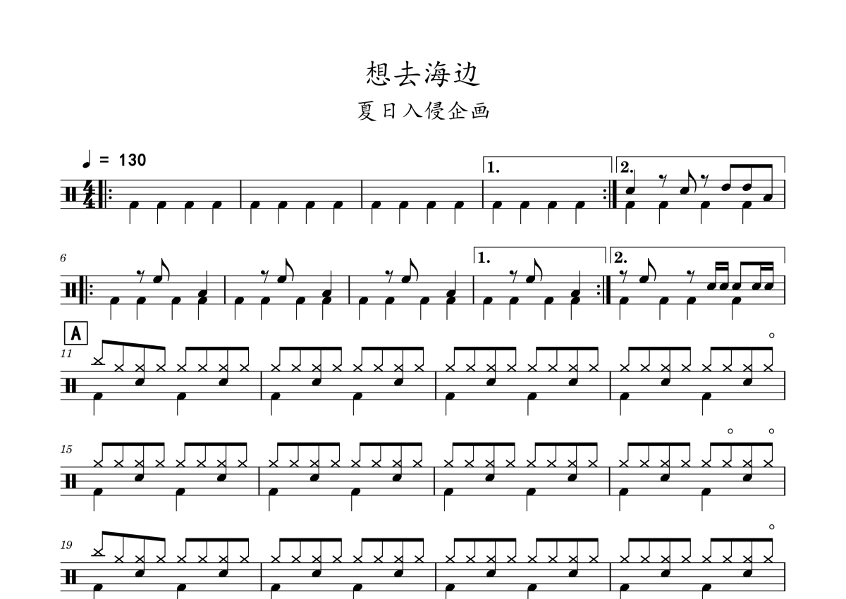 夏日入侵企划《想去海边》鼓谱 - 架子鼓谱