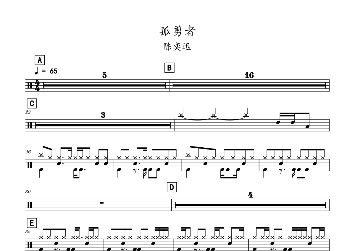 陈奕迅《孤勇者》鼓谱 - 架子鼓谱