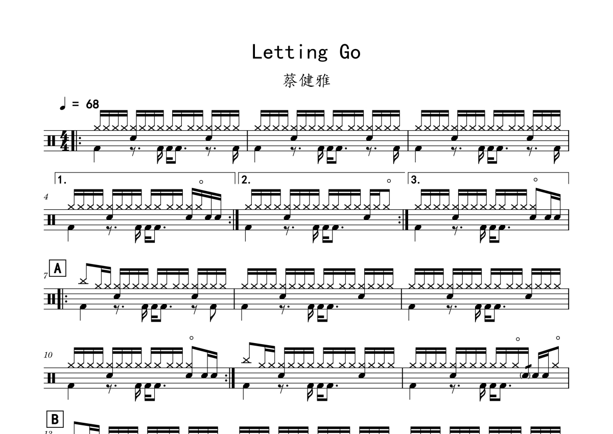 蔡健雅《Letting Go》鼓谱 - 架子鼓谱