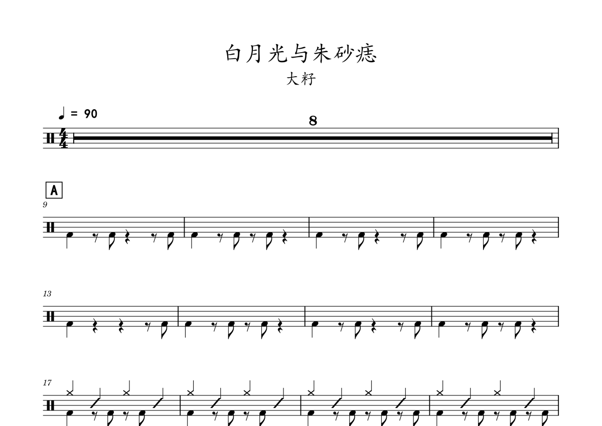 大籽《白月光与朱砂痣》鼓谱 - 架子鼓谱