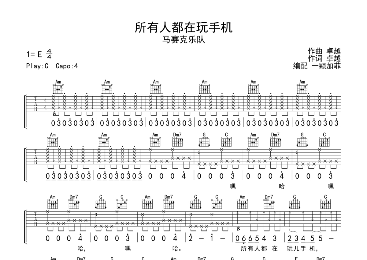 马赛克乐队《所有人都在玩手机》吉他谱 - C调弹唱六线谱