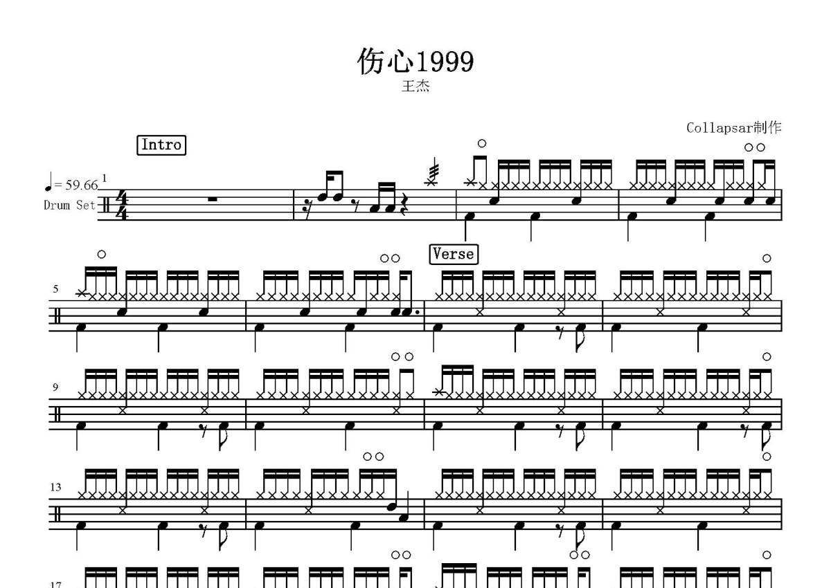 王杰《伤心1999》鼓谱 - 架子鼓谱
