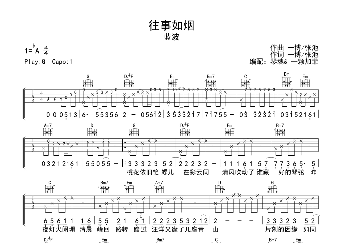 蓝波《往事如烟》吉他谱 - G调弹唱六线谱