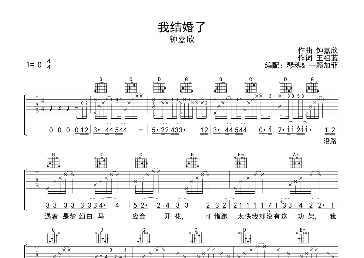 钟嘉欣《我结婚了》吉他谱 - G调弹唱六线谱