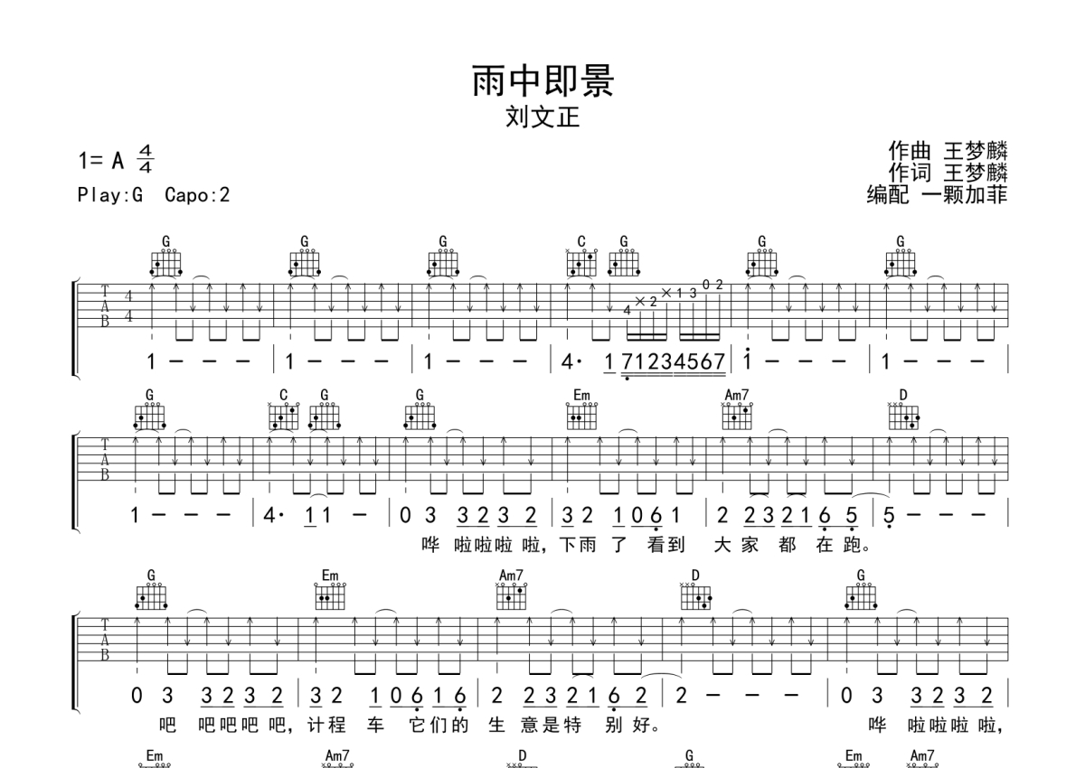 刘文正《雨中即景》吉他谱 - G调弹唱六线谱