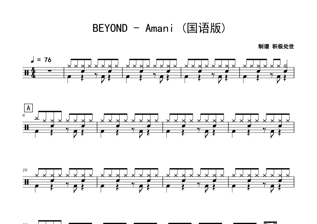 BEYOND《Amani》鼓谱 - 架子鼓谱 - 国语版