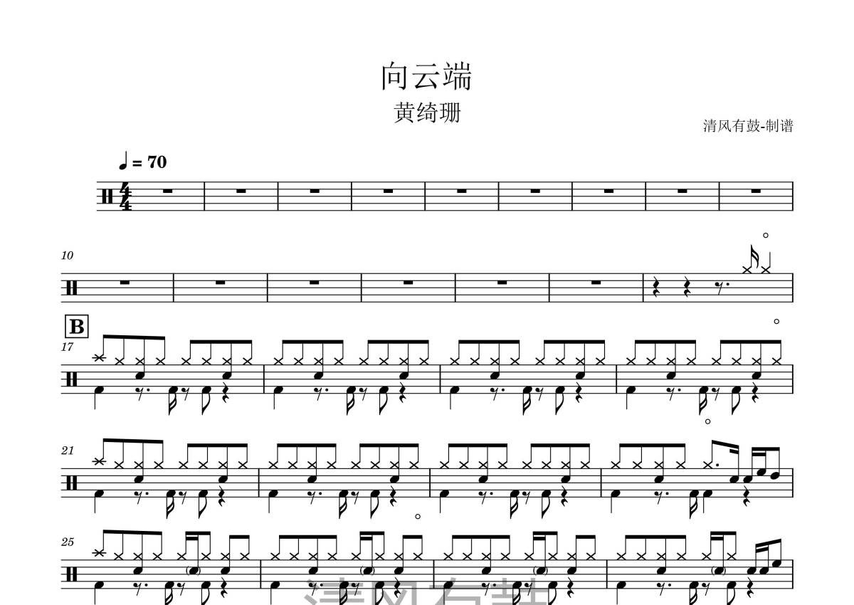 黄绮珊《向云端》鼓谱 - 架子鼓谱
