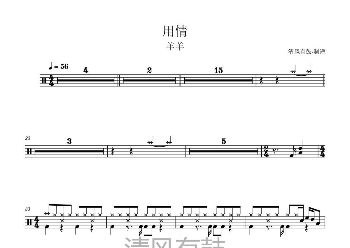 羊羊《用情》鼓谱 - 架子鼓谱