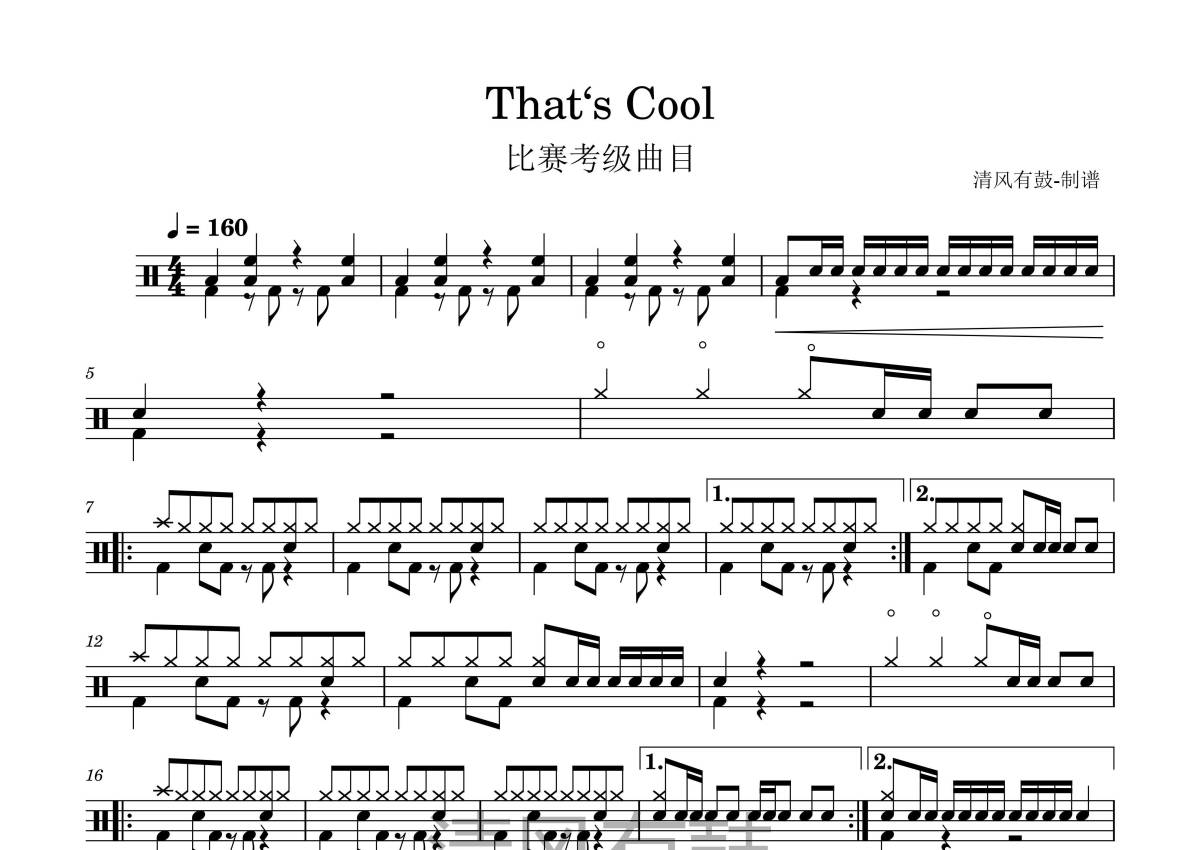 比赛曲目《That‘s Cool》鼓谱 - 架子鼓谱