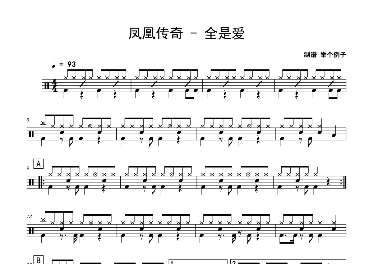 凤凰传奇《全是爱》鼓谱 - 架子鼓谱