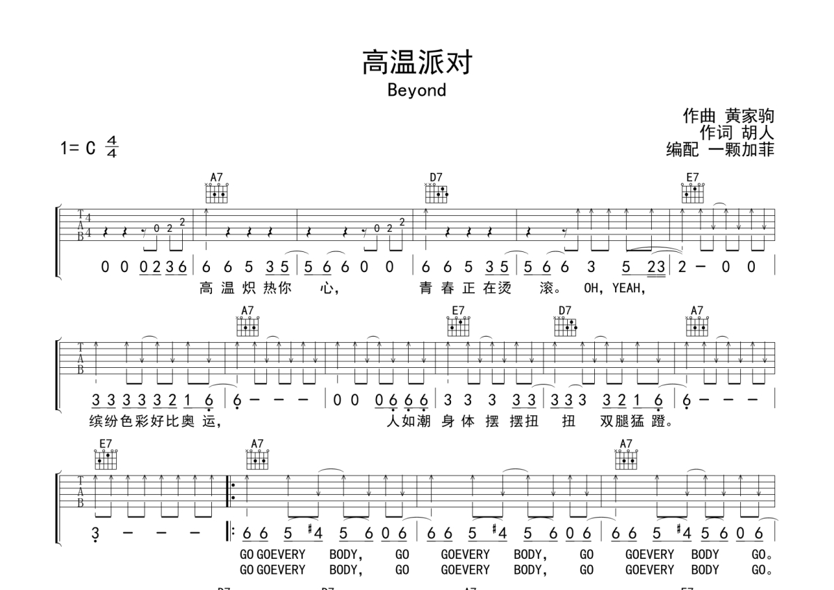 Beyond《高温派对》吉他谱 - C调弹唱六线谱