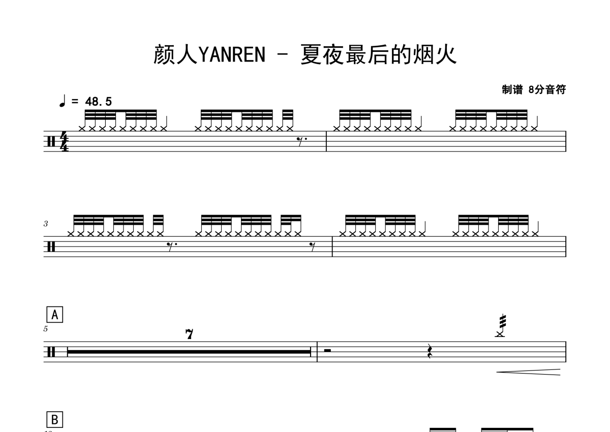 颜人YANREN《夏夜最后的烟火》鼓谱 - 架子鼓谱