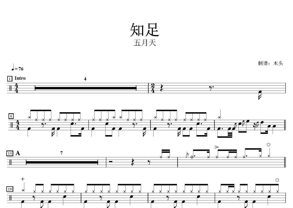五月天《知足》鼓谱 - 架子鼓谱