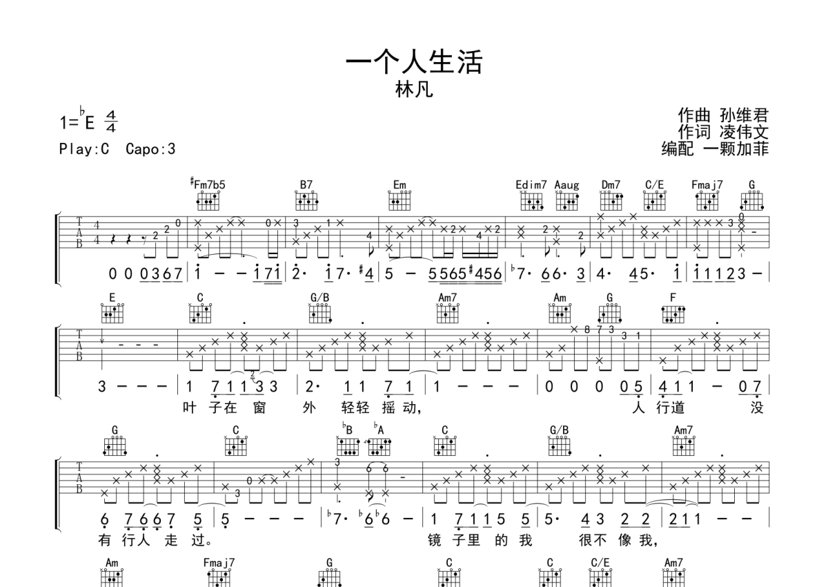 林凡《一个人生活》吉他谱 - C调弹唱六线谱