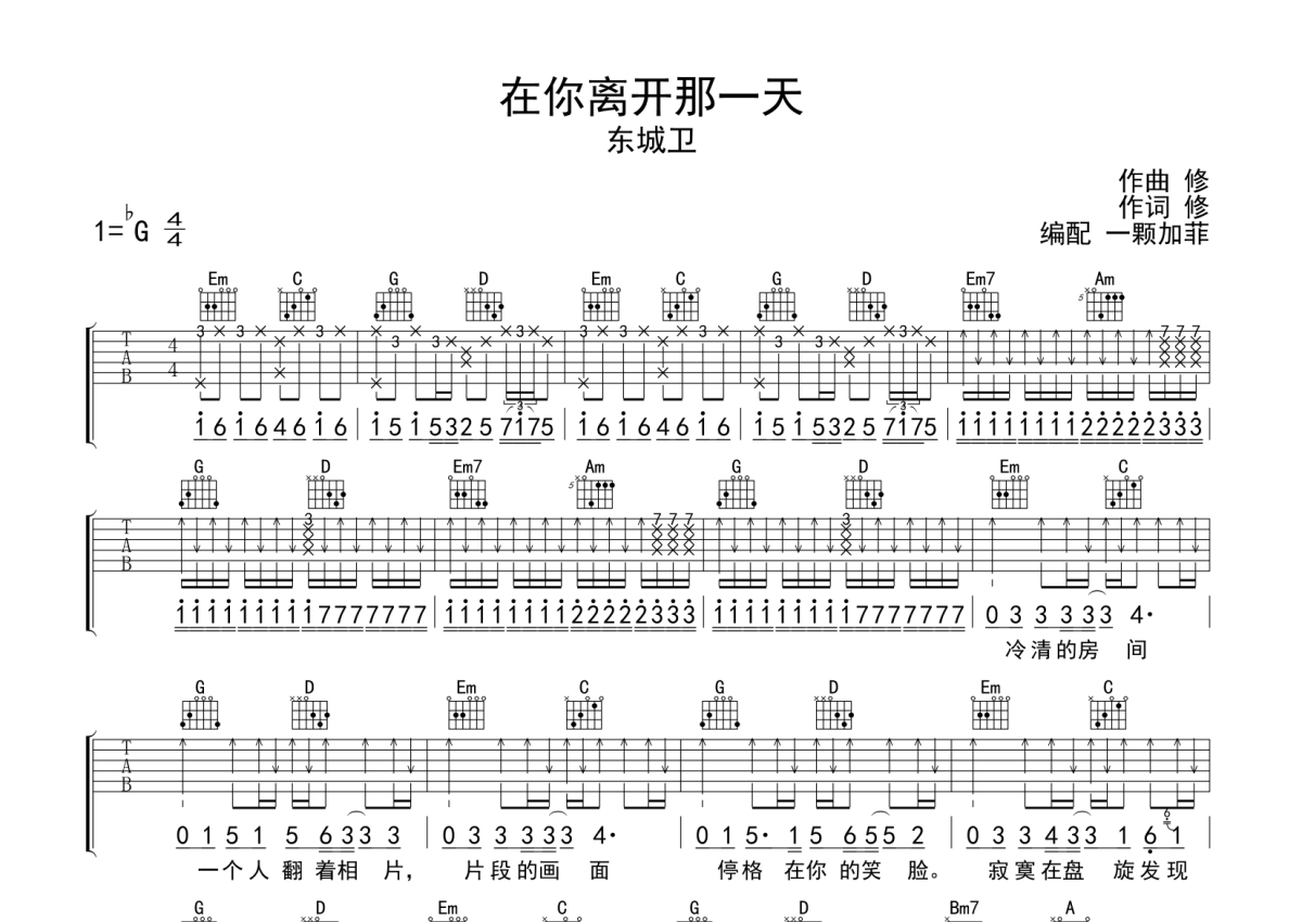 东城卫《在你离开那一天》吉他谱 - G调弹唱六线谱