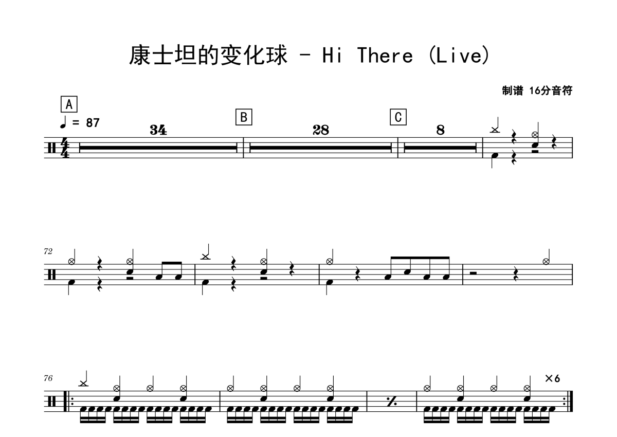 康士坦的变化球《Hi There》鼓谱 - 架子鼓谱 - (Live)