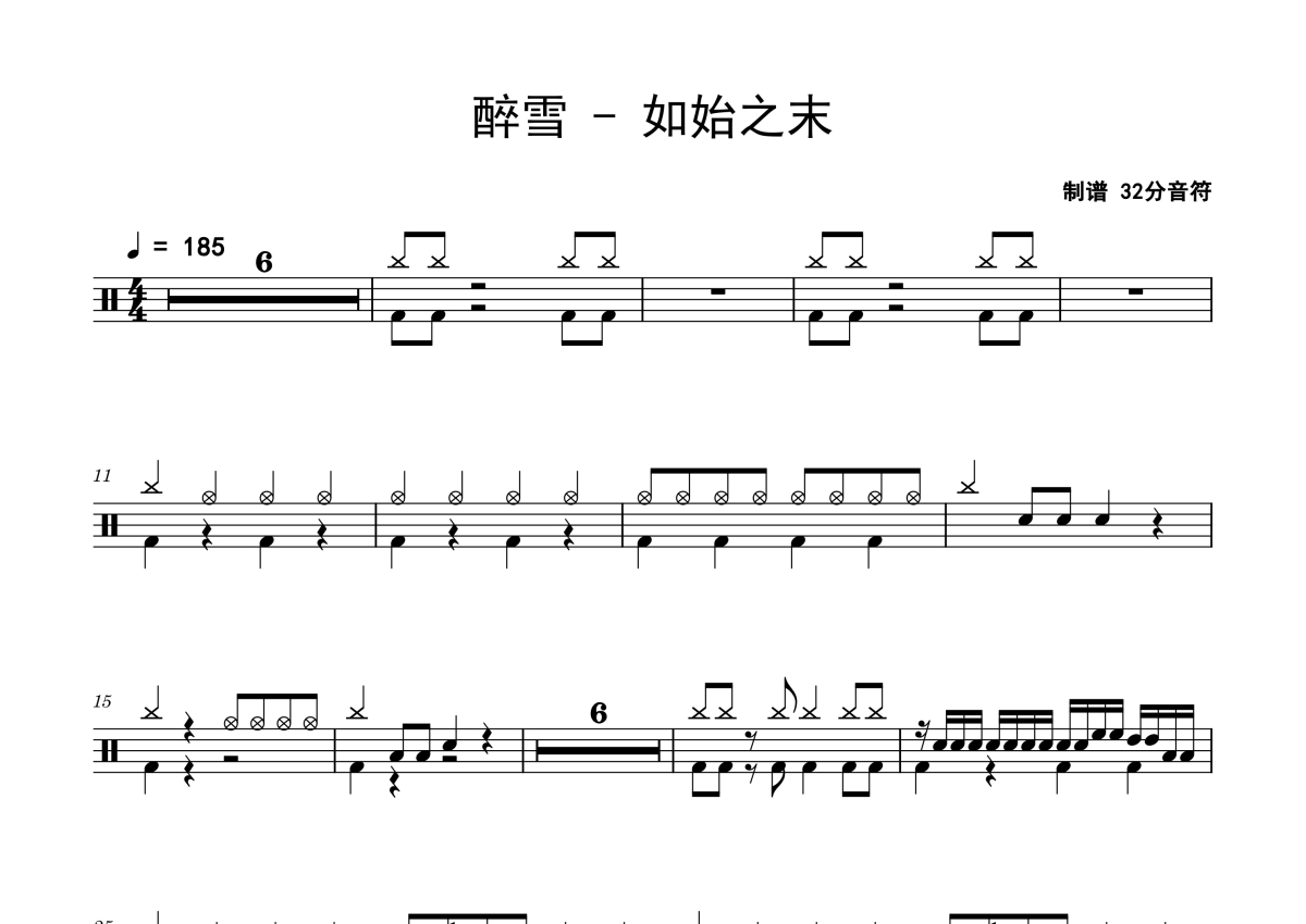 醉雪《如始之末》鼓谱 - 架子鼓谱