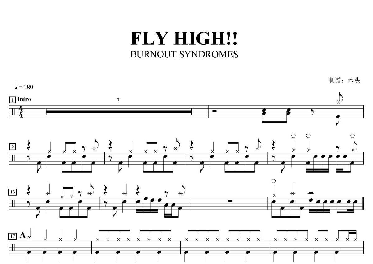 BURNOUT SYNDROMES《FLY HIGH!!》鼓谱 - 架子鼓谱