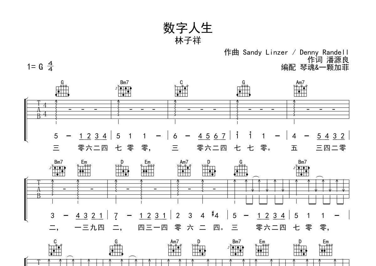 林子祥《数字人生》吉他谱 - G调弹唱六线谱