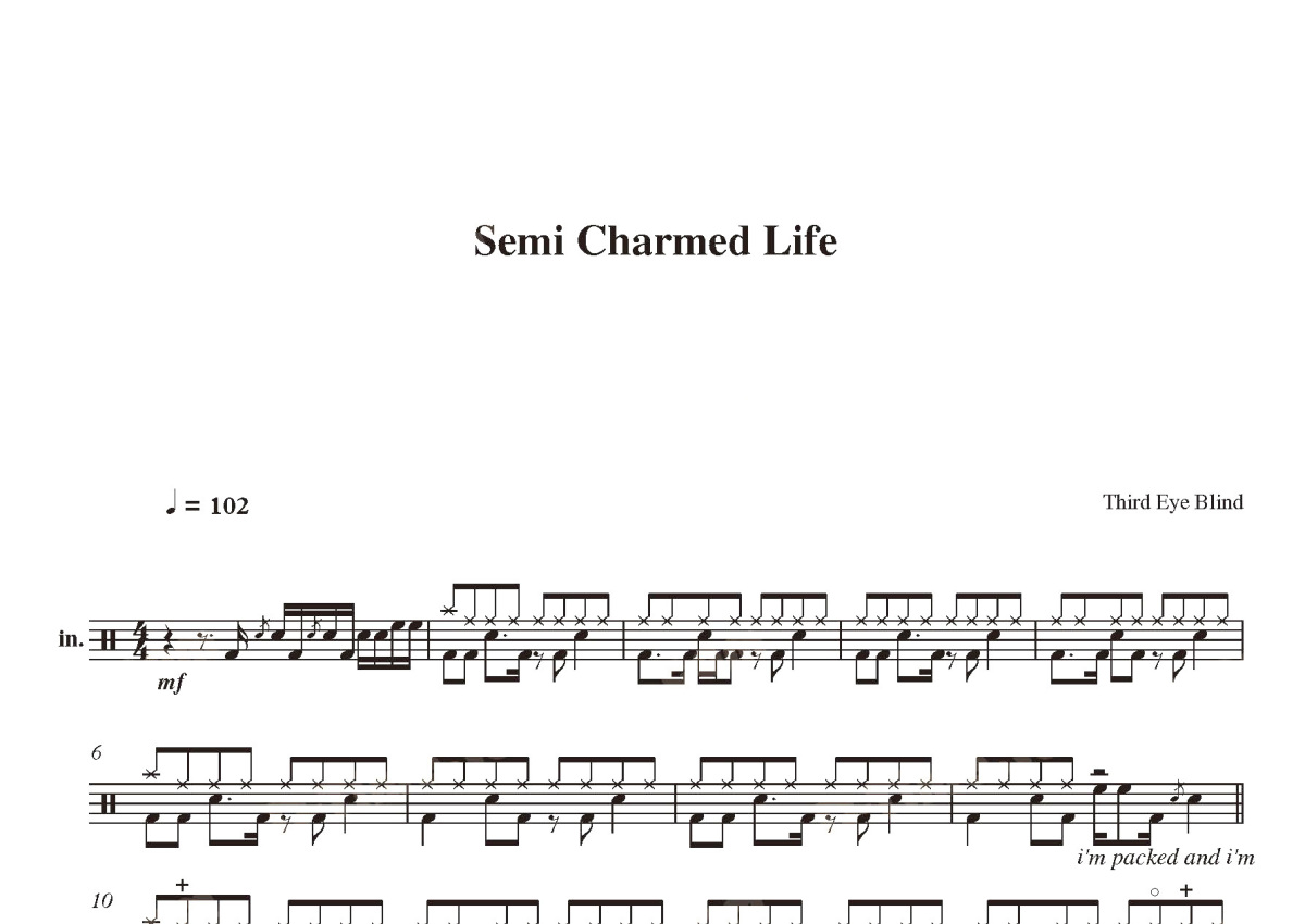 《semi charmed life》是Third Eye Blind演唱的一首歌曲,这份鼓谱共有三张高清图谱,图谱由 @打鼓谱 编配上传,图谱使用五线谱编配,使用这份semi charmed life架子鼓谱,你将能够轻松地敲打出这首Third Eye Blind的semi charmed life,快来尝试吧。《semi charmed life》现场版。Third Eye Blind,一个由歌手兼吉他手Stephan Jenkins、吉他手Kevin Cadogan、贝斯手Arion Salazar、鼓手Brad Hargraves组成的乐团。主要作品有《Losing A Whole Year》等。