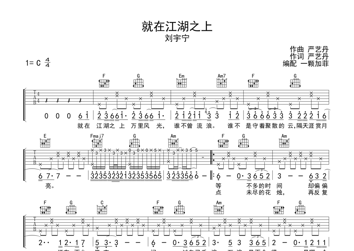 刘宇宁《就在江湖之上》吉他谱 - C调弹唱六线谱