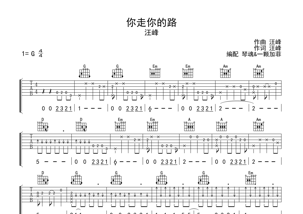 汪峰《你走你的路》吉他谱 - G调弹唱六线谱
