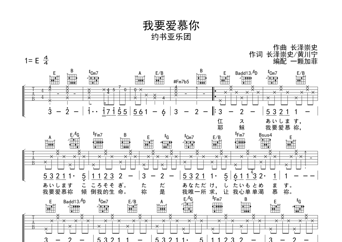 约书亚乐团《我要爱慕你》吉他谱 - E调弹唱六线谱