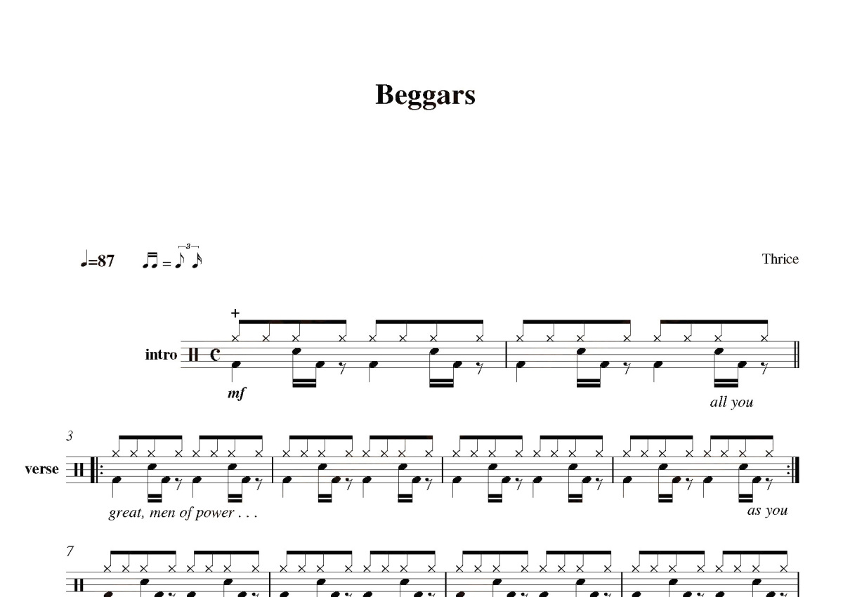 Thrice《Beggars》鼓谱 - 架子鼓谱
