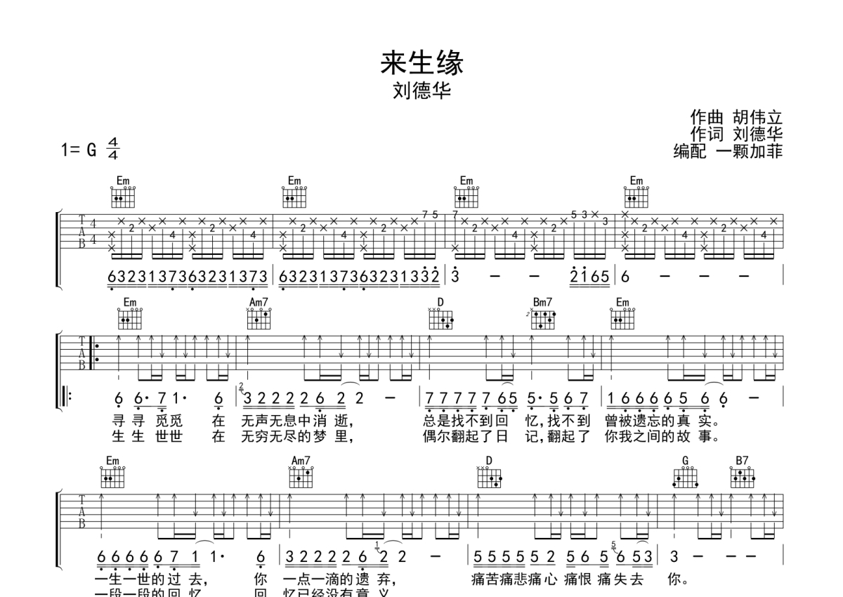 刘德华《来生缘》吉他谱 - G调弹唱六线谱