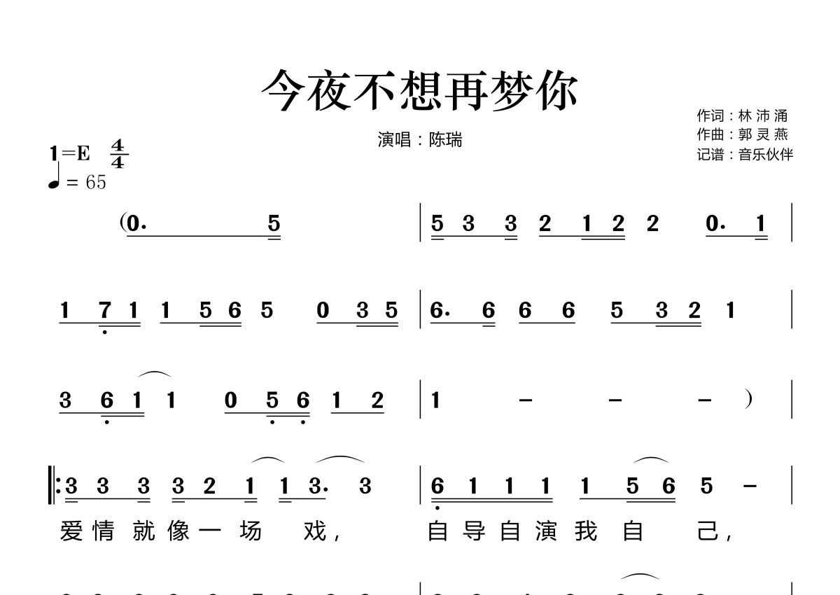 《今夜不想再梦你》简谱 - 陈瑞