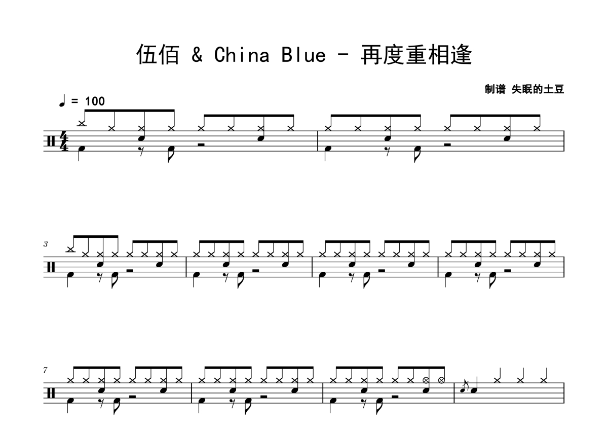 伍佰 & China Blue《再度重相逢》鼓谱 - 架子鼓谱