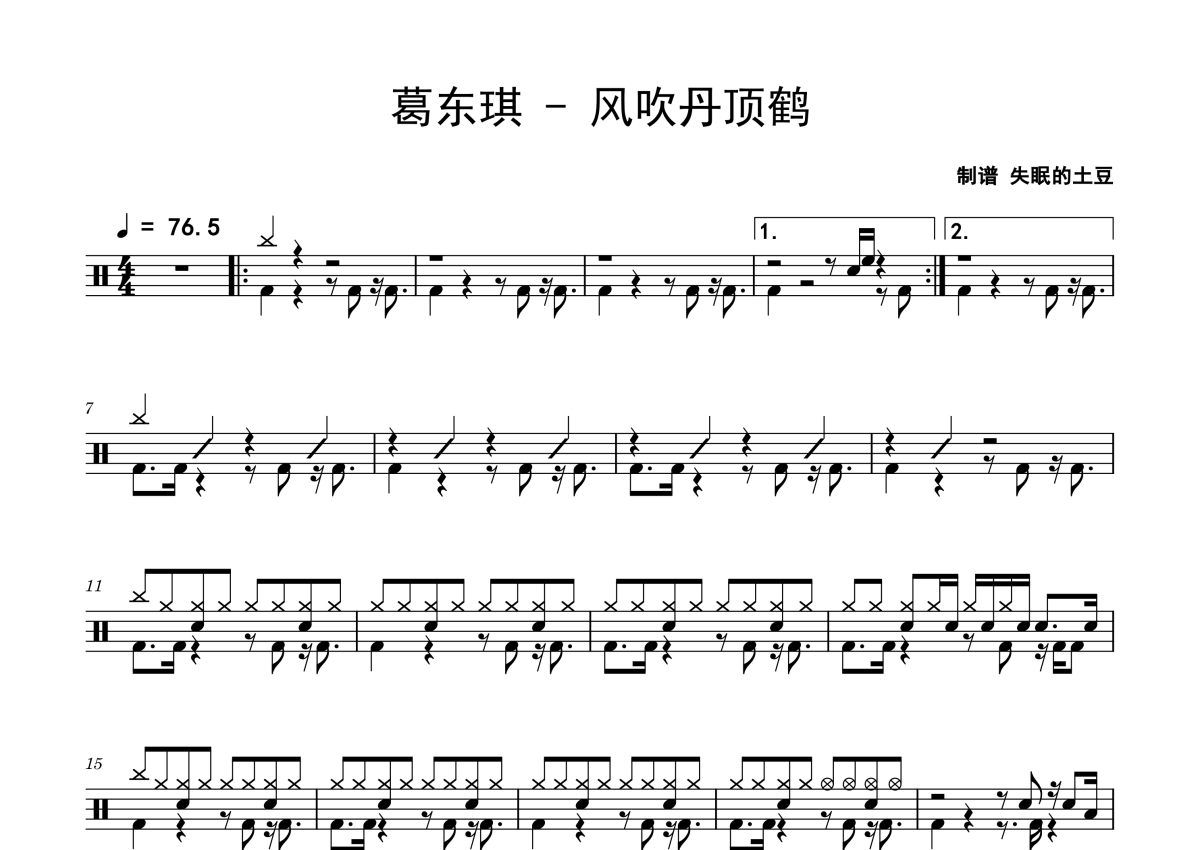 葛东琪《风吹丹顶鹤》鼓谱 - 架子鼓谱