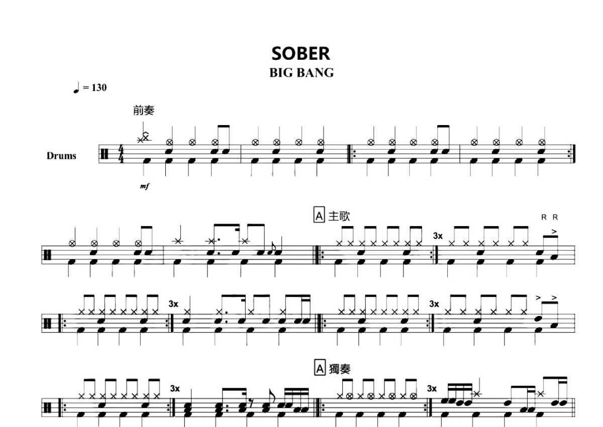 BIG BANG《Sober》鼓谱 - 架子鼓谱
